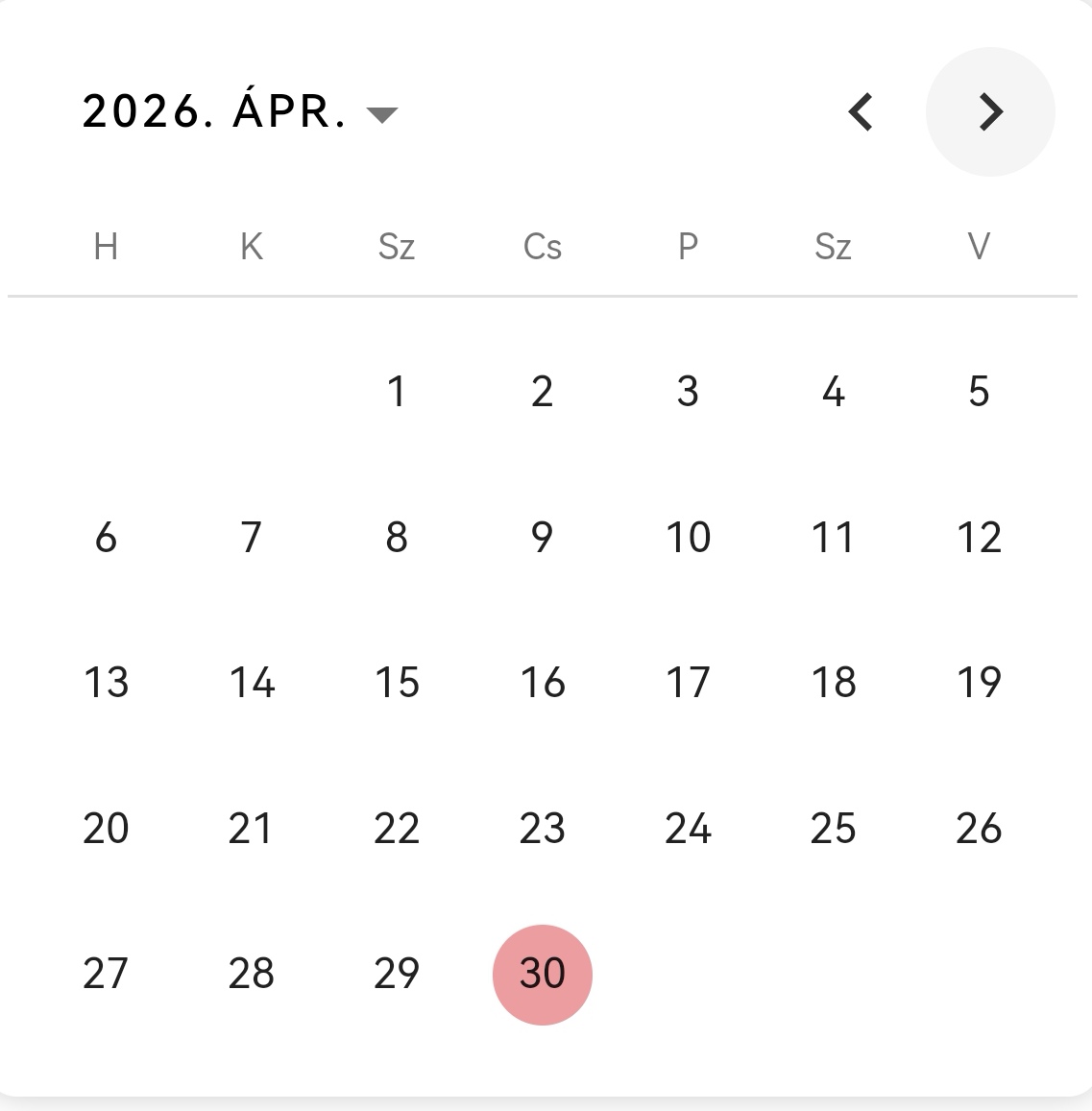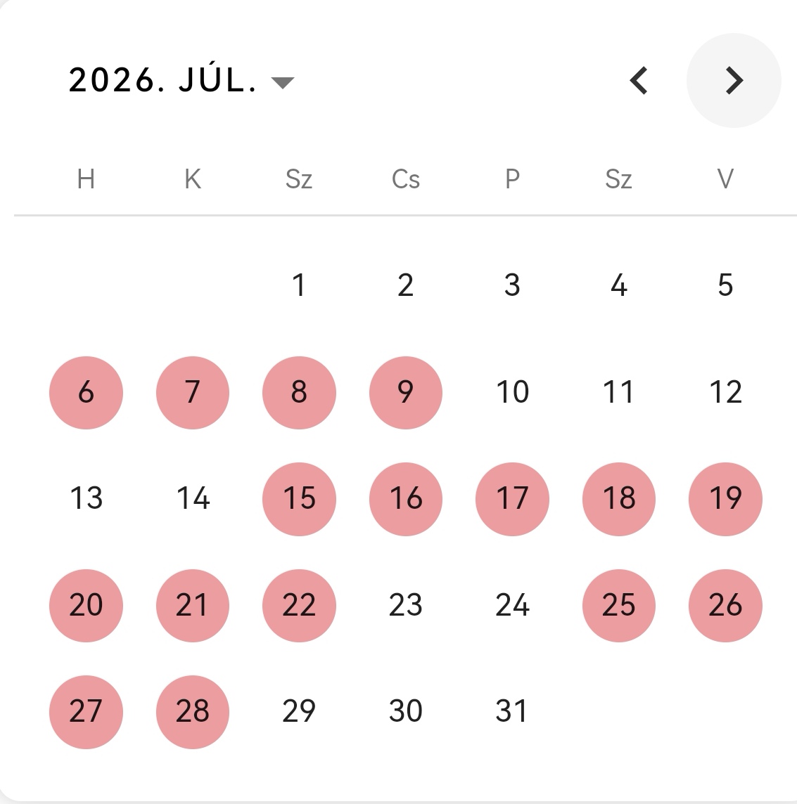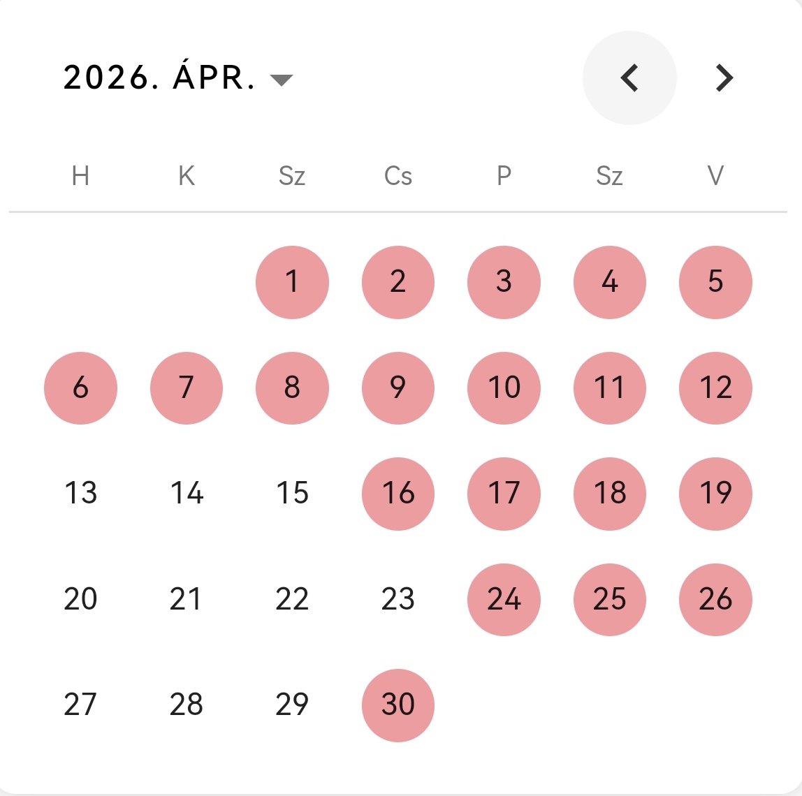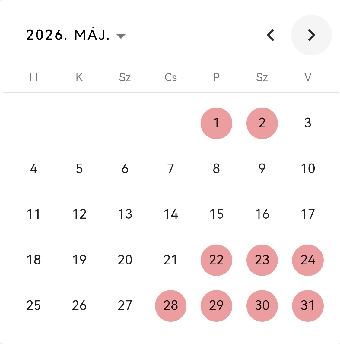Pirossal jelölt éjszakák a foglalt éjszakákat jelentik.